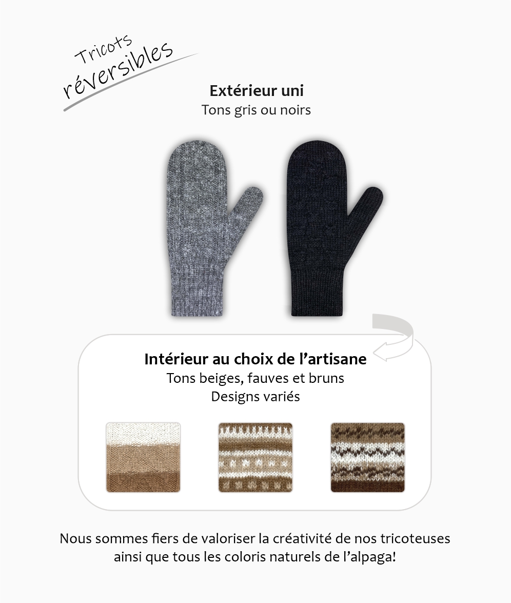 La nature fait si bien les choses en nous offrant 22 tonalités naturelles d’alpaga. Nos tricoteuses sont fières de valoriser ces riches coloris naturels sans aucune teinture.